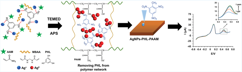 鋳型を作って、ニトロ化合物と錯体を形成することで、ニトロ化合物を検出するお話です。