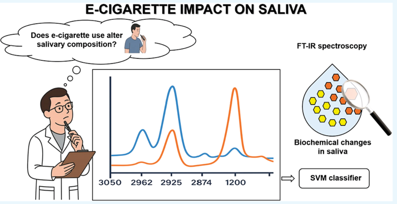 電子タバコを使っている学生と、そうでない学生との違いを唾液をFT-IRで測定して調べた研究例です。